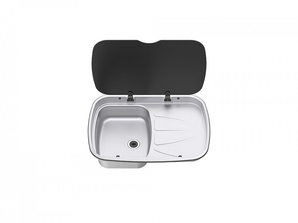 Chiuveta incorporata din otel inoxidabil, cu capac de sticla
