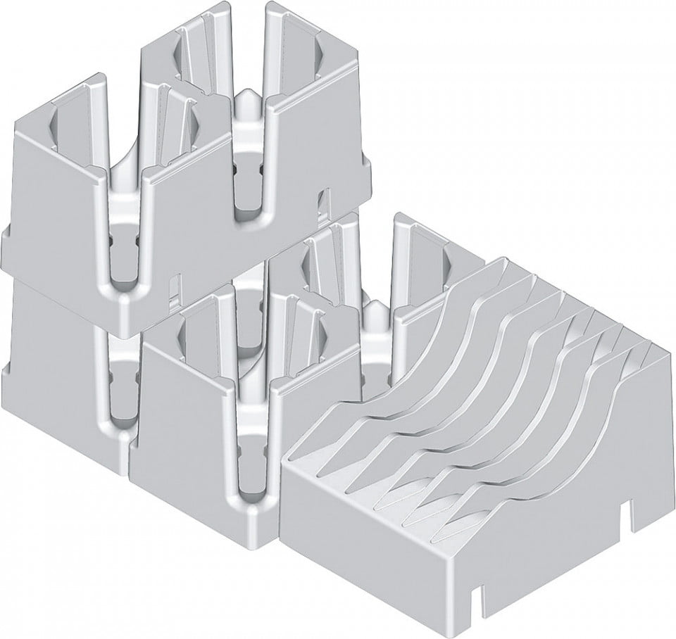 Sistemul de conectare este format din 8 benzi de depozitare, care au ca rezultat o insertie de compartiment variabila. Barele late realizate din plastic flexibil ofera o protectie optima de separare pentru diferite articole si astfel va stabilizeaza articolele, sunt rezistente la rupere si antiderapante. Exista multe varfuri in partea superioara lunga a unei bare de depozitare, care prin simpla conectare creeaza o conexiune stabila si ferma. Grila stransa a colturilor permite ajustarea flexibila la aproape orice distanta.