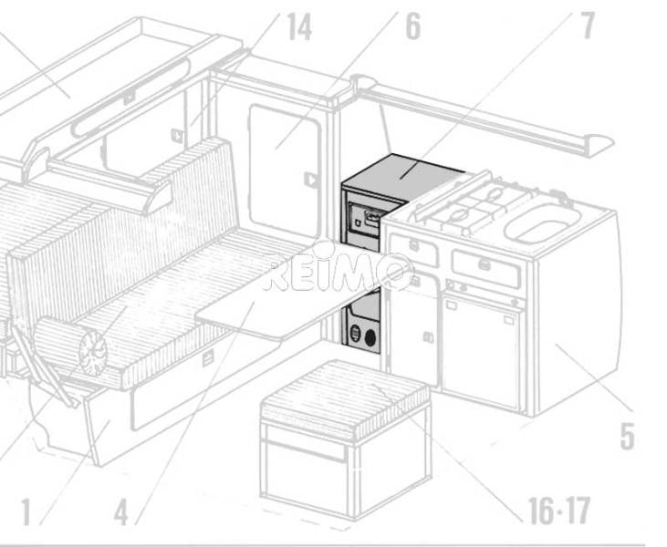 Kit dulap de vesela 1 usa, VW T3, laminat granitto
