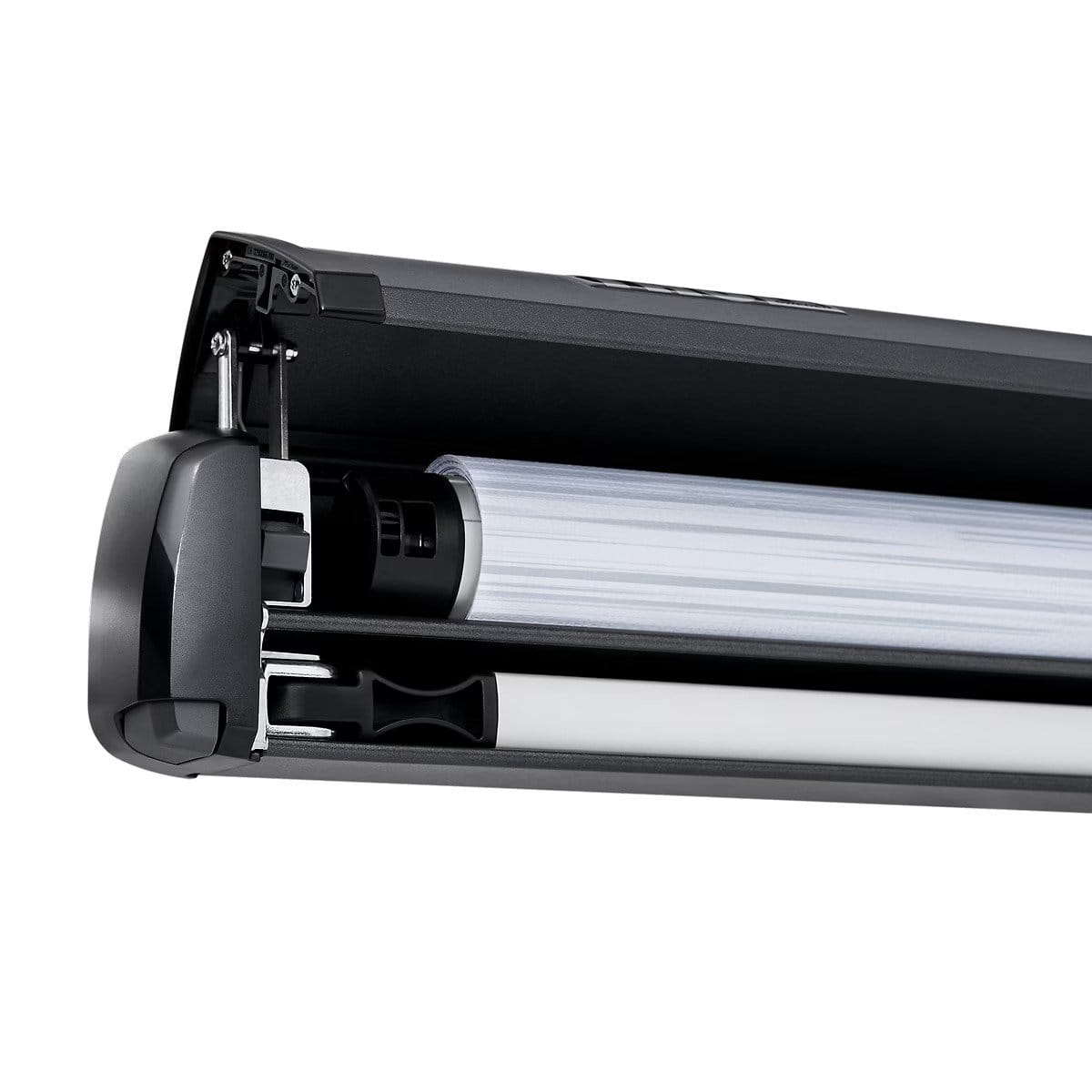Proiectata pentru usurinta si comoditate, copertina Thule Outland este usor de utilizat si este depozitata intr-o carcasa usoara si eleganta din aluminiu pentru a ramane protejata de intemperii atunci cand nu este utilizata. Cand este complet extinsa, copertina se intinde pana la 2,5 m.