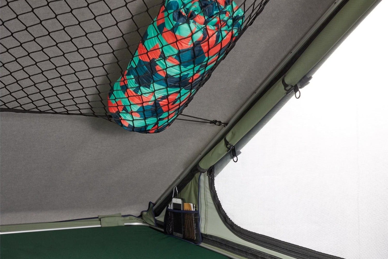 Cortul auto Thule Basin Wedge poate fi instalat in mai putin de un minut, iar exteriorul rezistent face ca acest cort de pe acoperis sa fie potrivit pentru conditii meteorologice extreme.