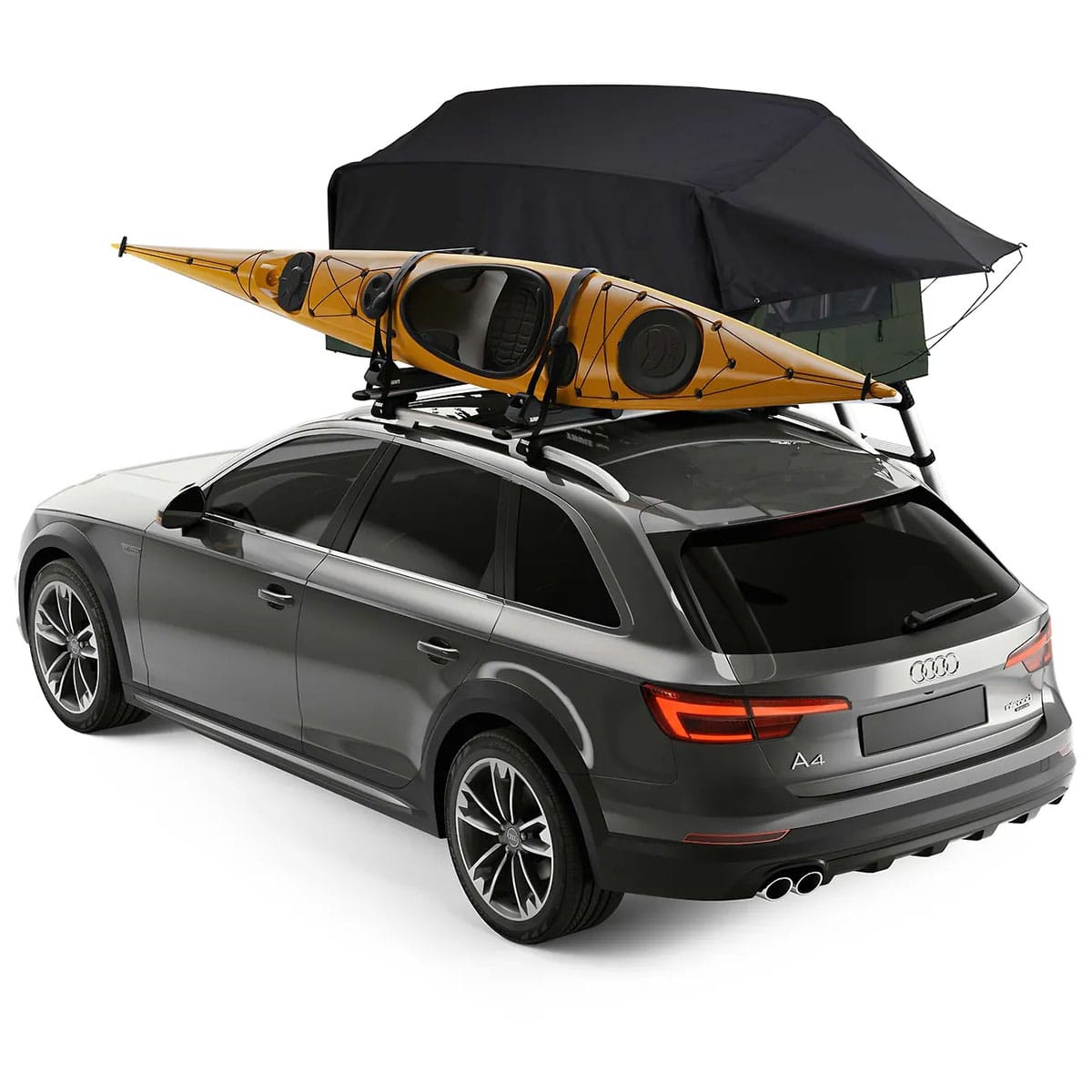 Cort spațios cu montare pe barele transversale ale masinii, ideal pentru doi adulți. Se pliaza compact, astfel putandu-se transporta in acelasi timp, pe barele transversale, si biciclete sau caiace.