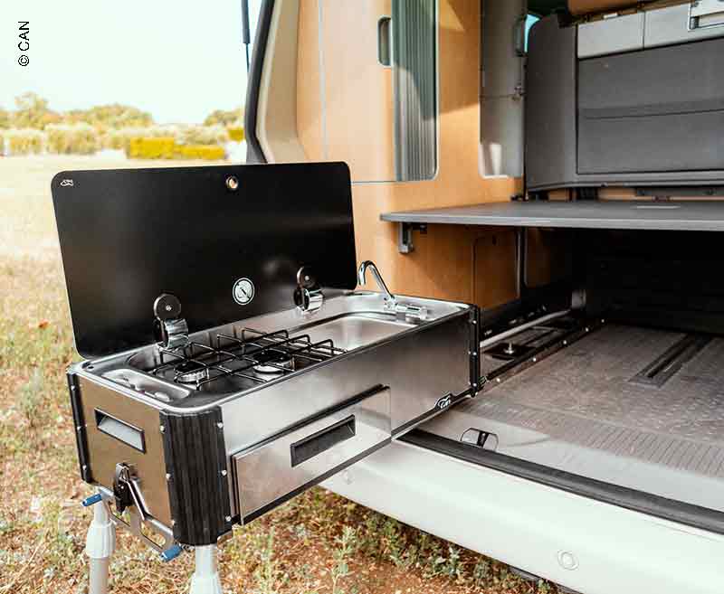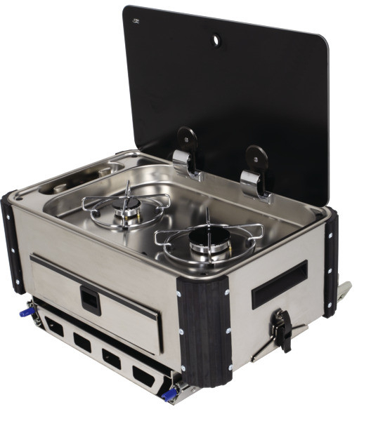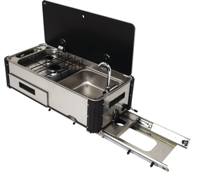 Aragaz cu un arzator si chiuveta.Sertar lateral extensibil.