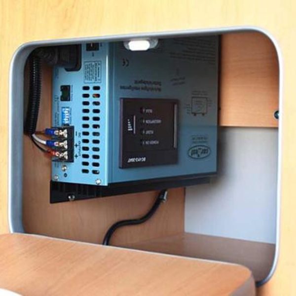 2x recipient pentru apa proaspata de 12 litri, 1x recipient pentru apa reziduala de 16 litri, sistem 12V / 230V.