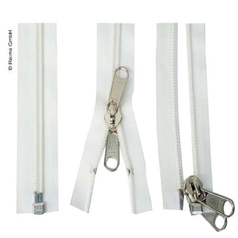Fermoar dublu din poliester pentru cort cu o lungime de 210cm si culoarea alb.