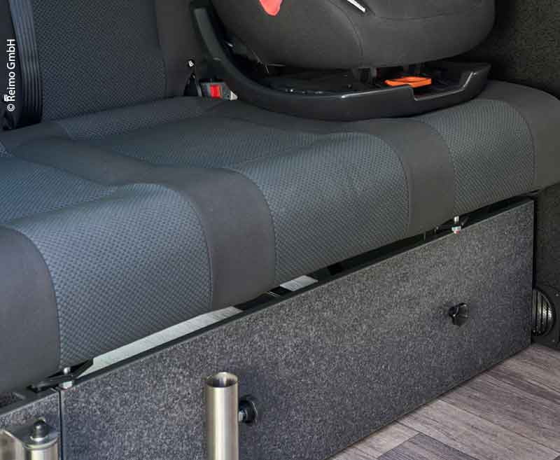 Sertar pentru capatul frontal al canapelei VW T6 / 5 V3100 dimensiunea 10 in stil Travel. Se poate indeparta pentru transportul