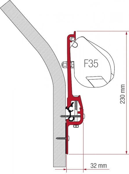 Set adaptor VW T5 / T6Pentru montarea copertinei F 35 pe transportoare VW T5 /...