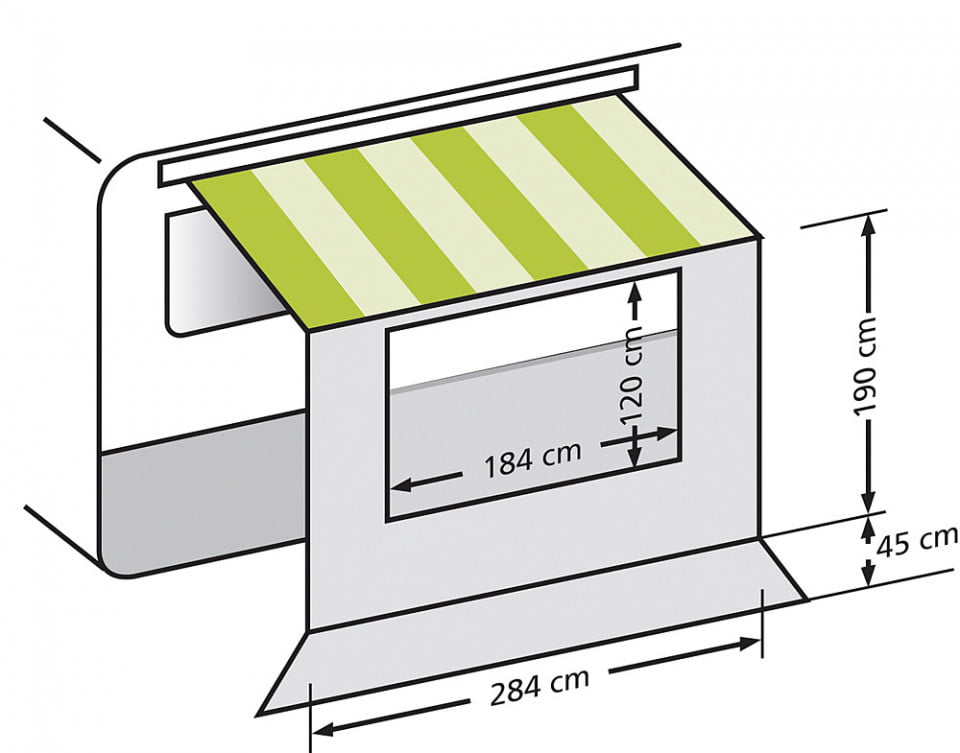 Perete lateral pentru copertina universal, cu fereastraCaracteristiciInaltime: 180 cmAdancime: 200 / 240 cmMaterial: poliesterGreutate neta...