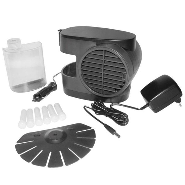 Asigura o racire placuta in masina, la birou sau acasa. Rezervorul de apa de 0,45 L este vizibil din exterior. Cu o singura umplere a rezervorului, ventilatorul reglabil in 2 trepte raceste pe o perioada de aproximativ 8 ore. Livrarea include o placa metalica, un magnet, tampoane adezive si o curea. Atentie: Nu asezati produsul si zona airbagurilor!